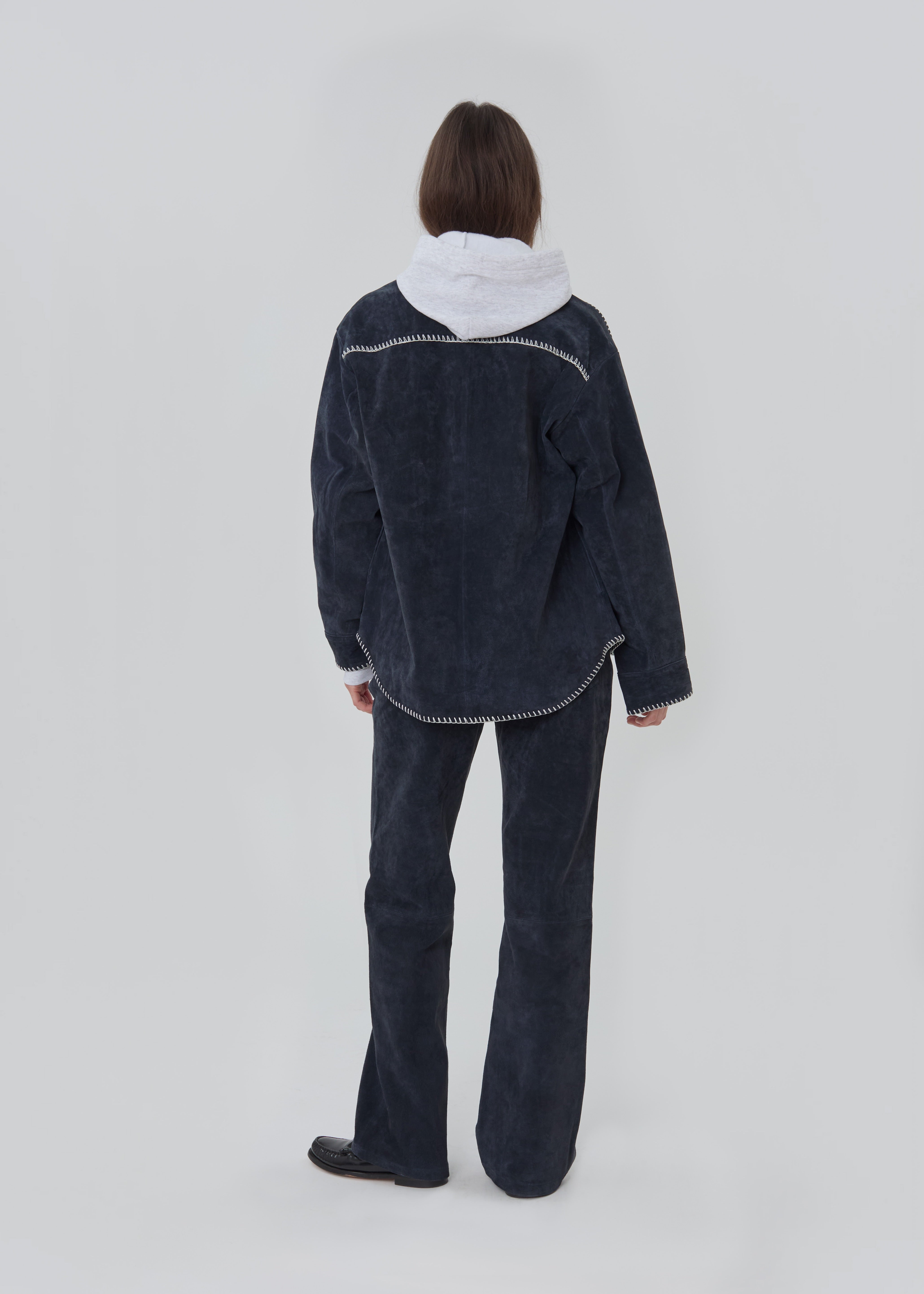 Western Shirt in Navy Suede