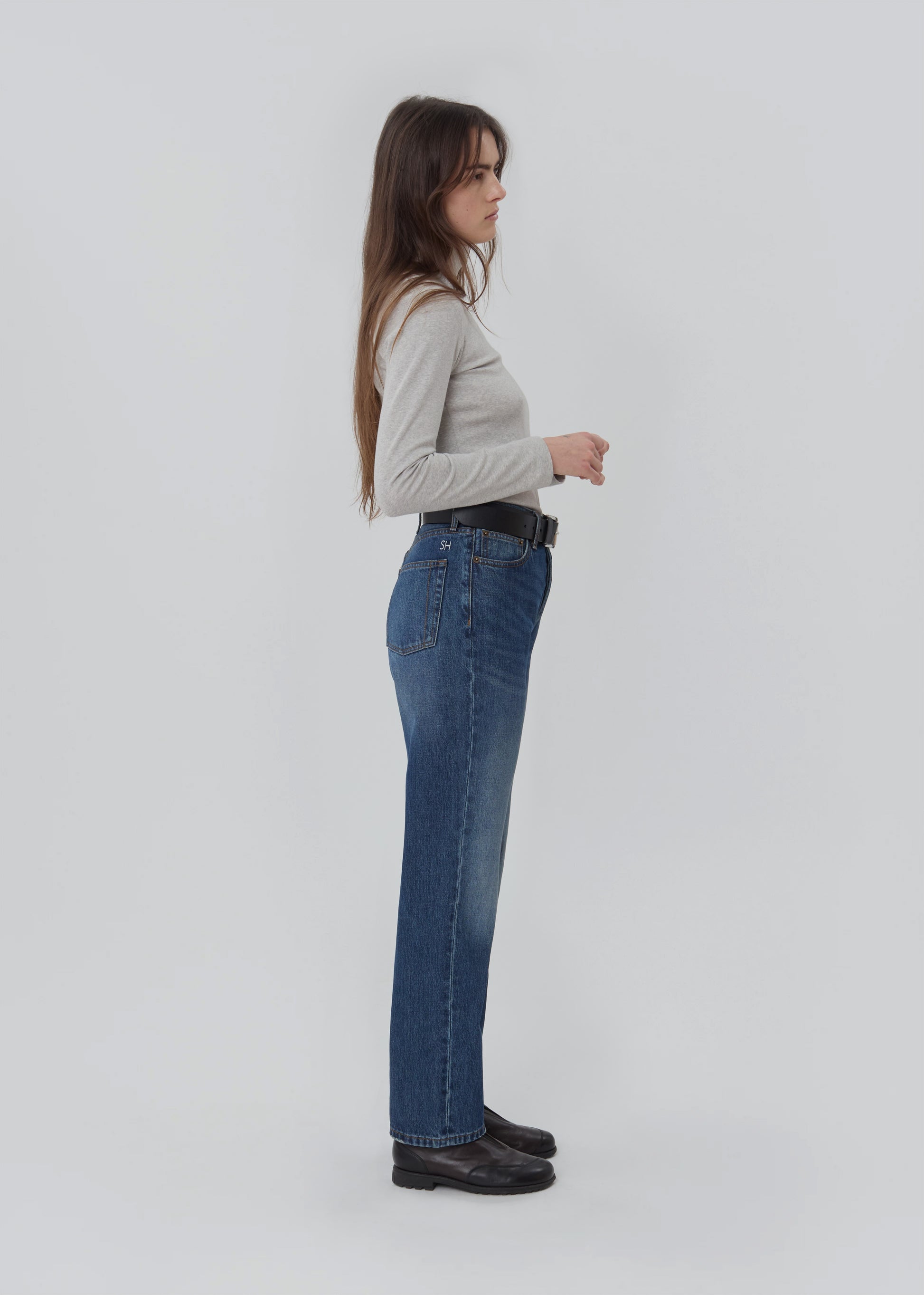 The Childhood Jean is inspired by the "anti-fit" simplicity of your favorite childhood jeans. It's a straight leg, super high-rise, wedgie fit. It features a traditional button fly, custom hardware, and our signature 'SH' embroidery.