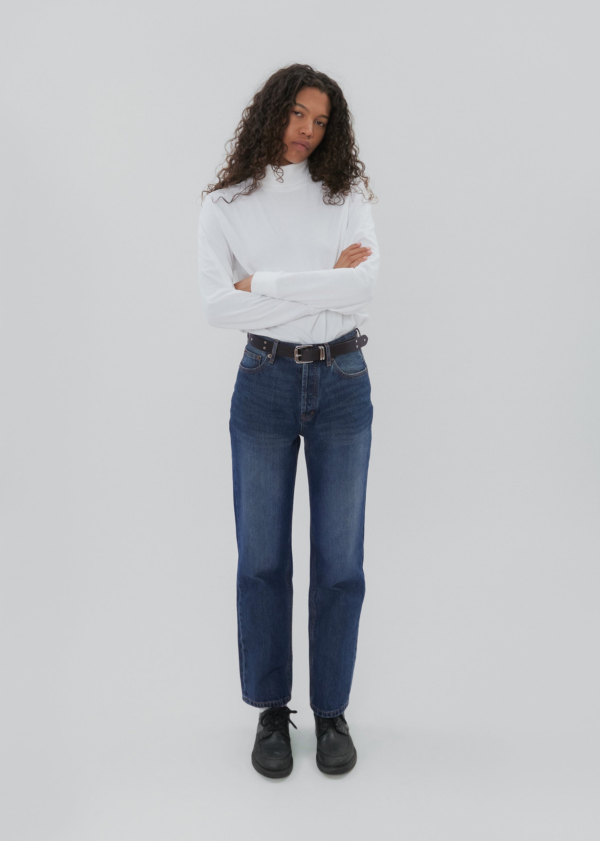 The Childhood Jean is inspired by the "anti-fit" simplicity of your favorite childhood jeans. It's a straight leg, super high-rise, wedgie fit. It features a traditional button fly, custom hardware, and our signature 'SH' embroidery.