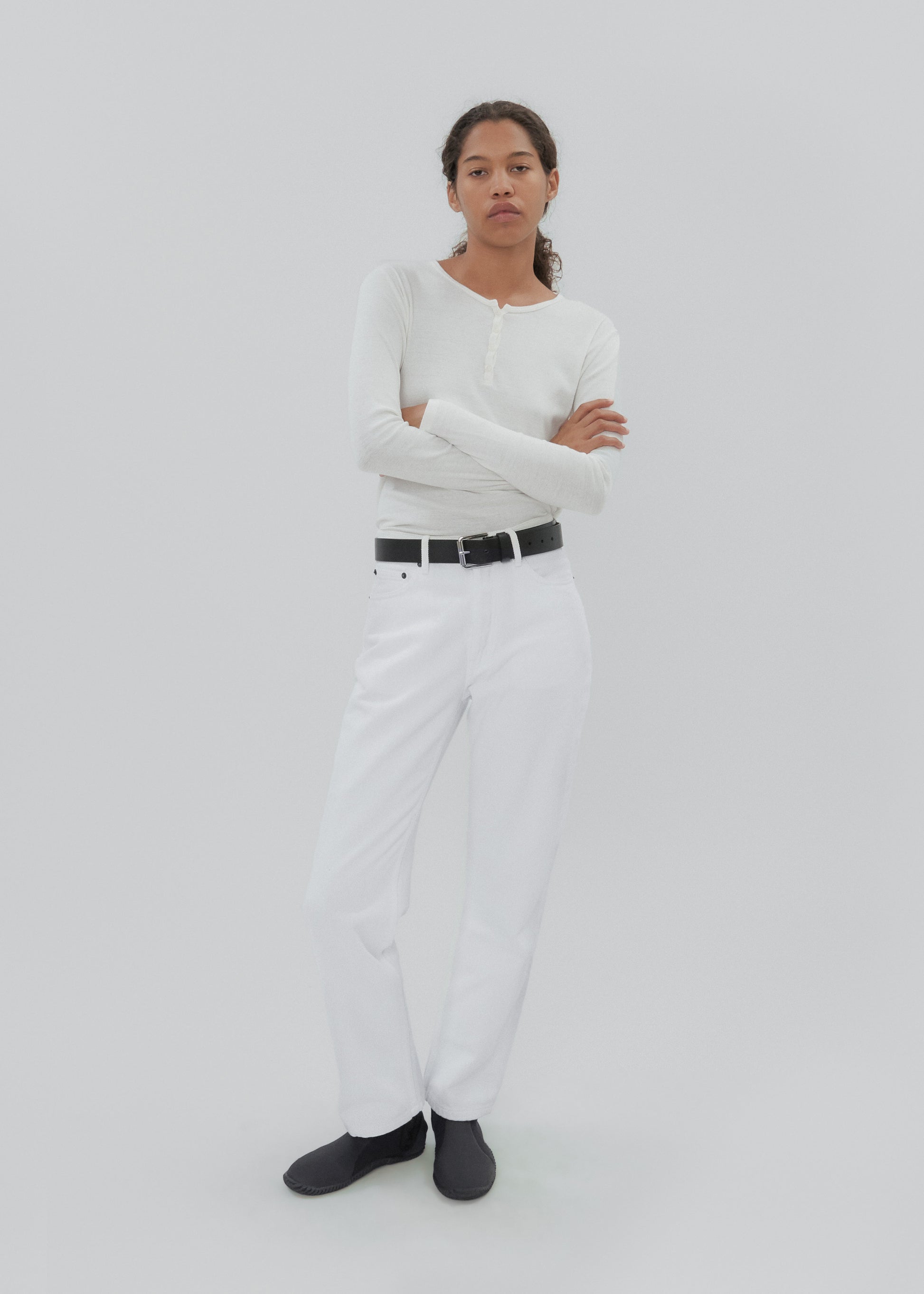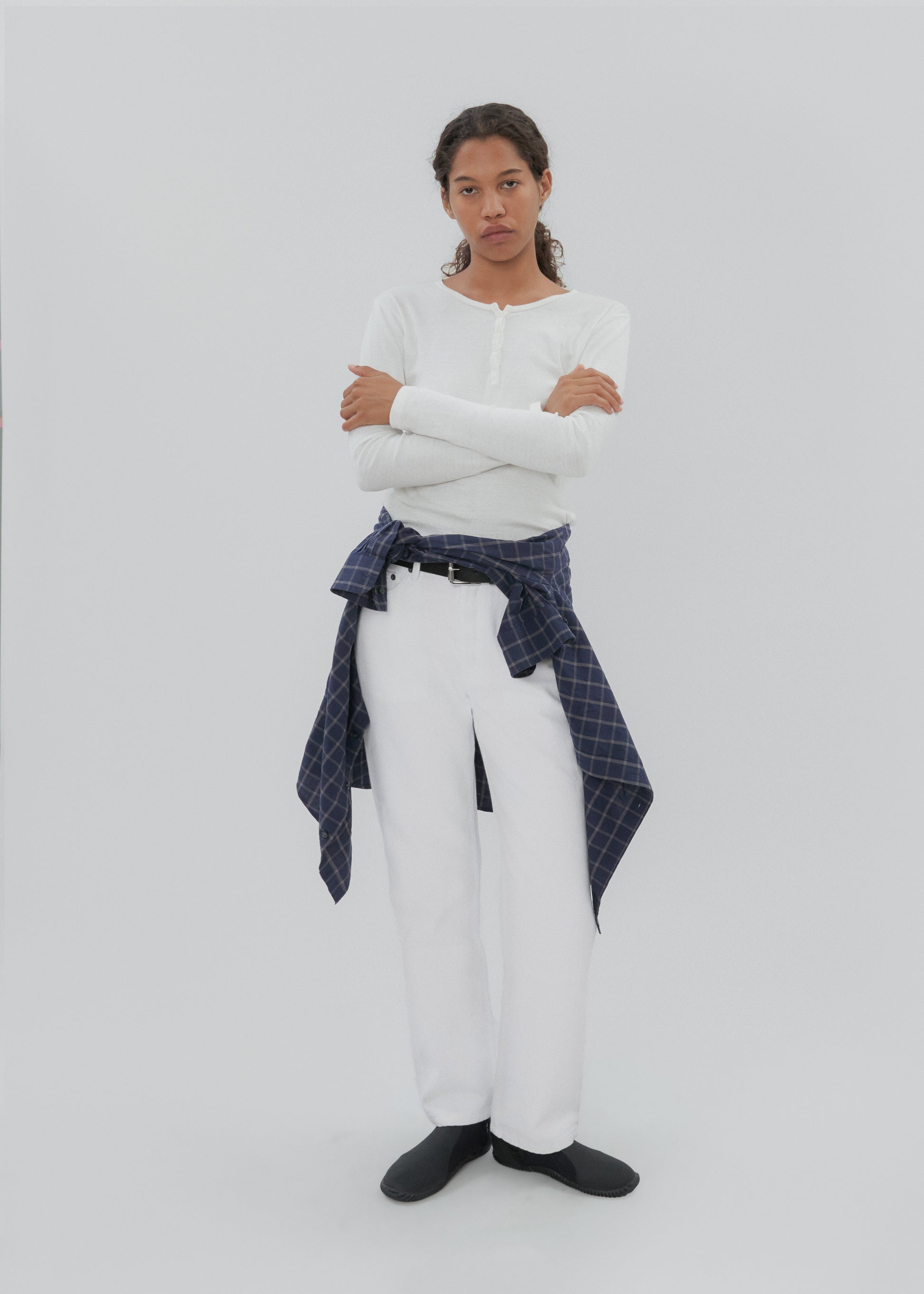 The Childhood Jean is inspired by the "anti-fit" simplicity of your favorite childhood jeans. It's a straight leg, super high-rise, wedgie fit. It features a traditional button fly, custom hardware and our signature 'SH' embroidery.