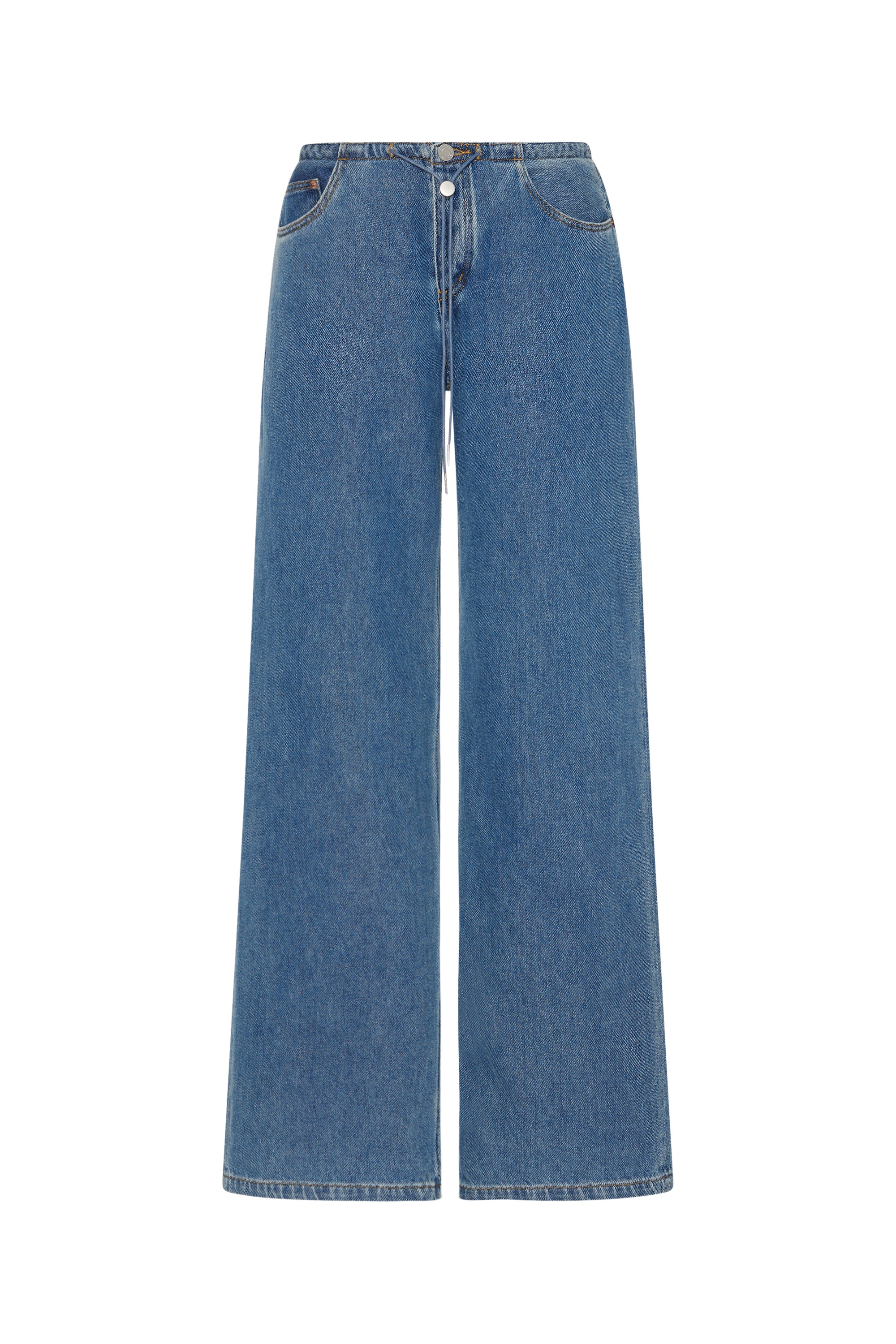 The Cool Jean is a relaxed leg, low-rise jean with an adjustable drawstring toggle. The Cool has no waistband (yes, no waistband.) It features a traditional button fly, custom hardware and our signature 'SH' embroidery.
