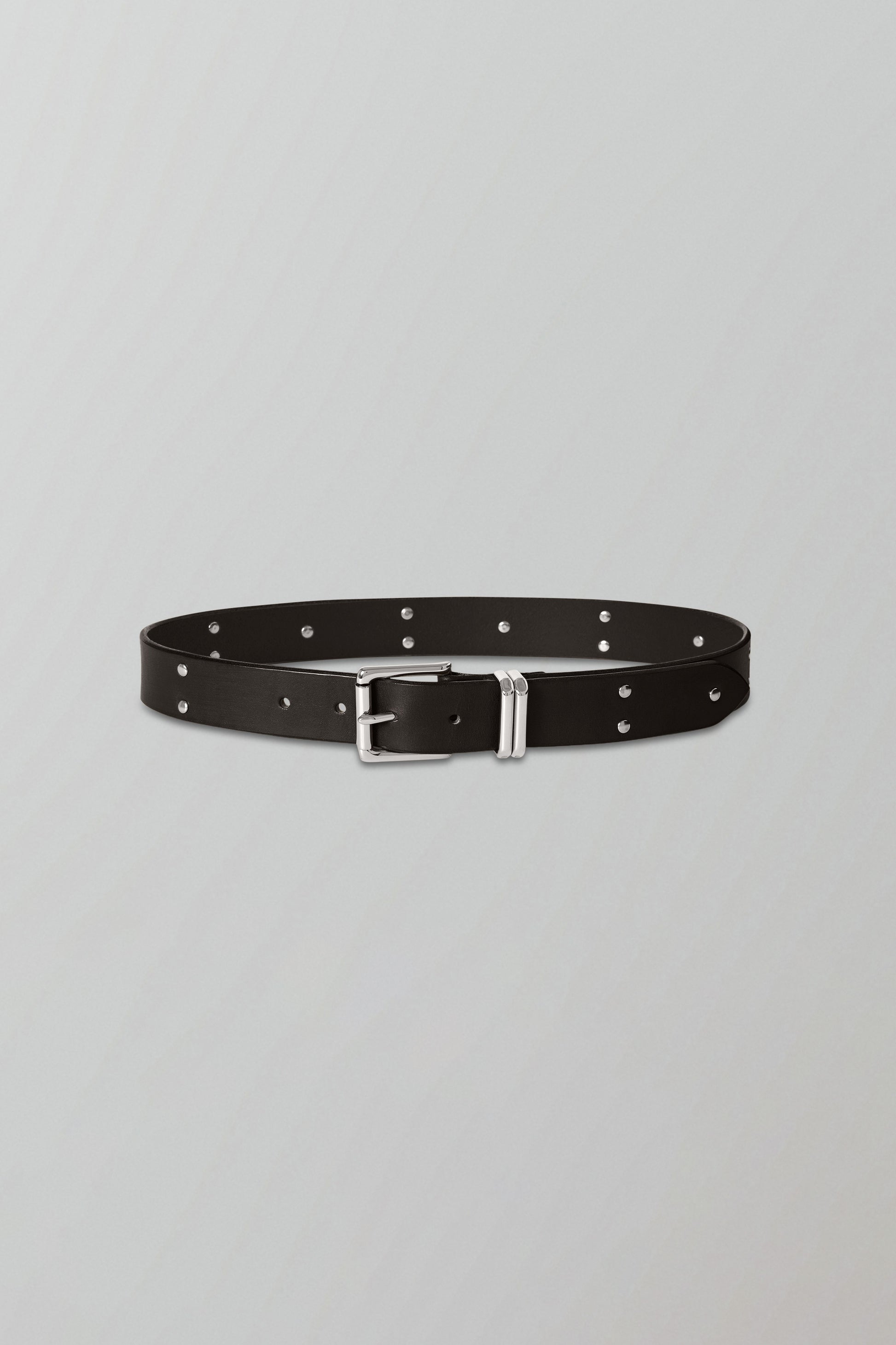 The Studded Belt is crafted from genuine vegetable-tanned leather and features a 1 ⅛" width and Studded pattern embellishment. Belt details include a single-prong roller buckle and double chrome keeper.